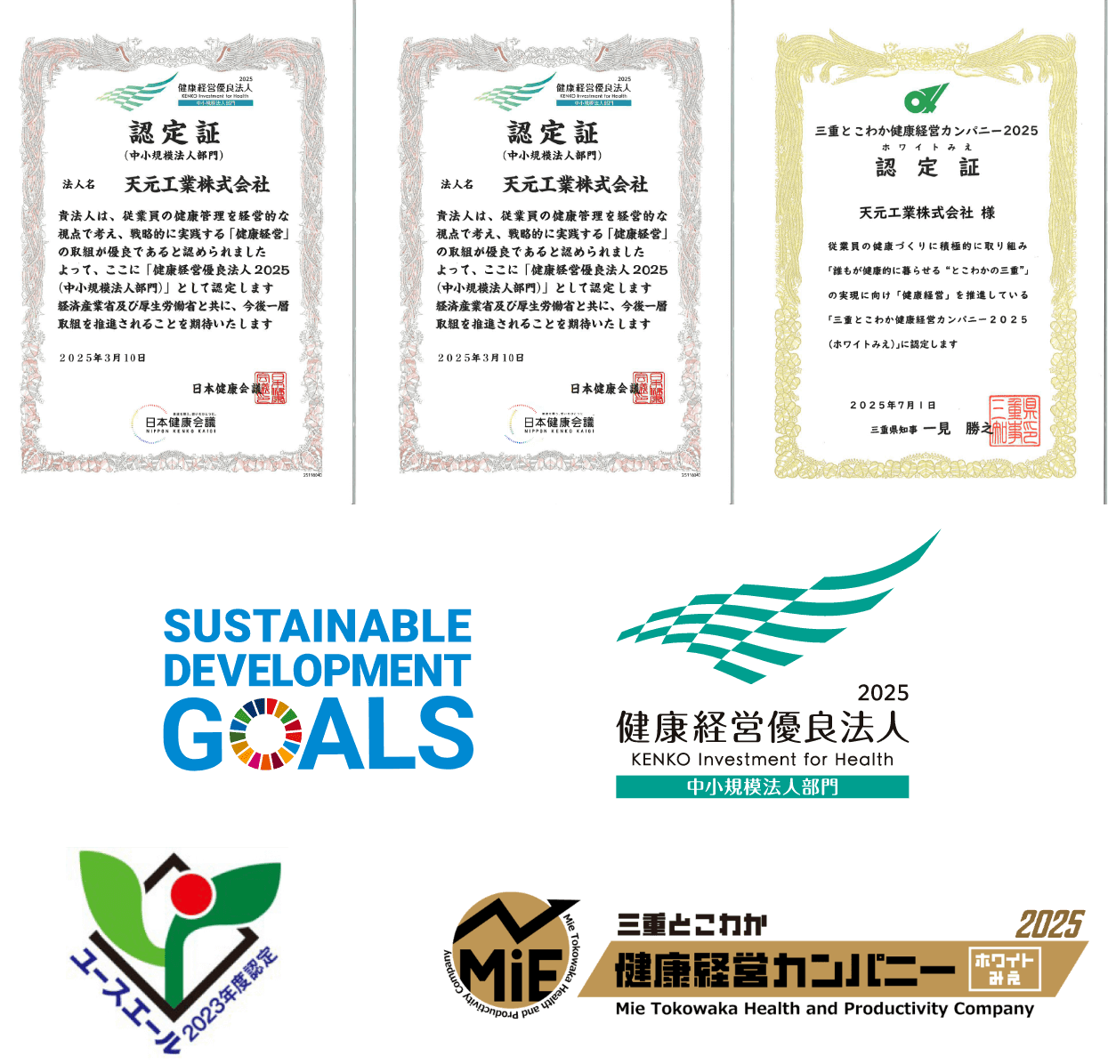 当社は、ユースエール認定や健康経営優良法人認定など、各種表彰を受けており、働きやすい企業を目指して様々なことに取り組んでいます。