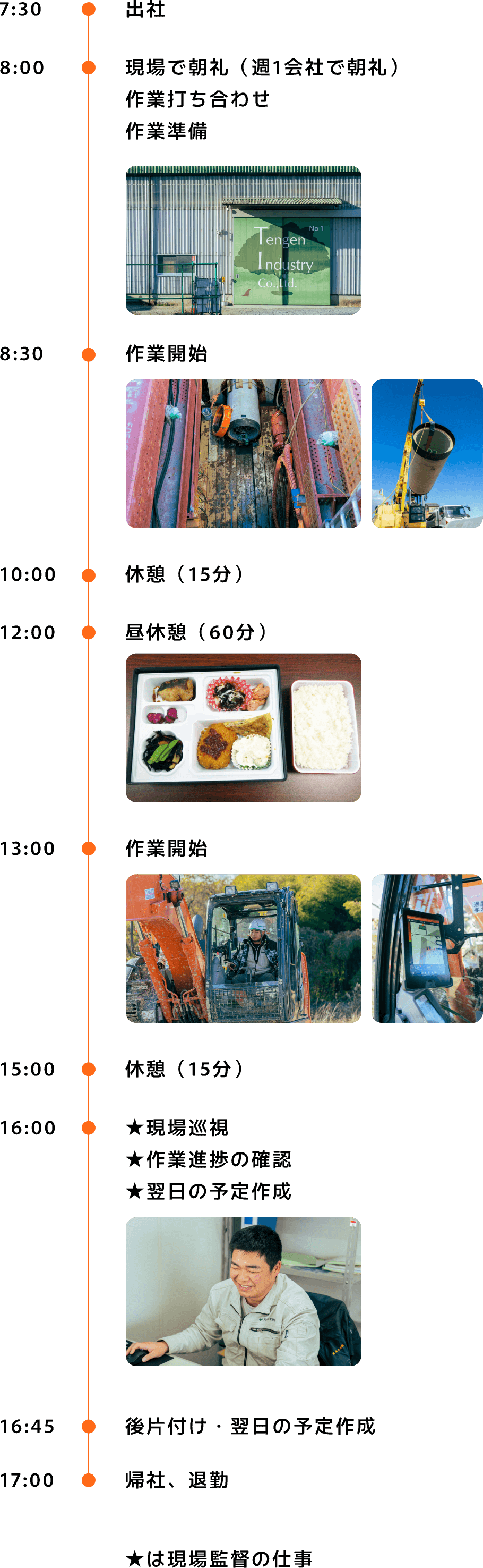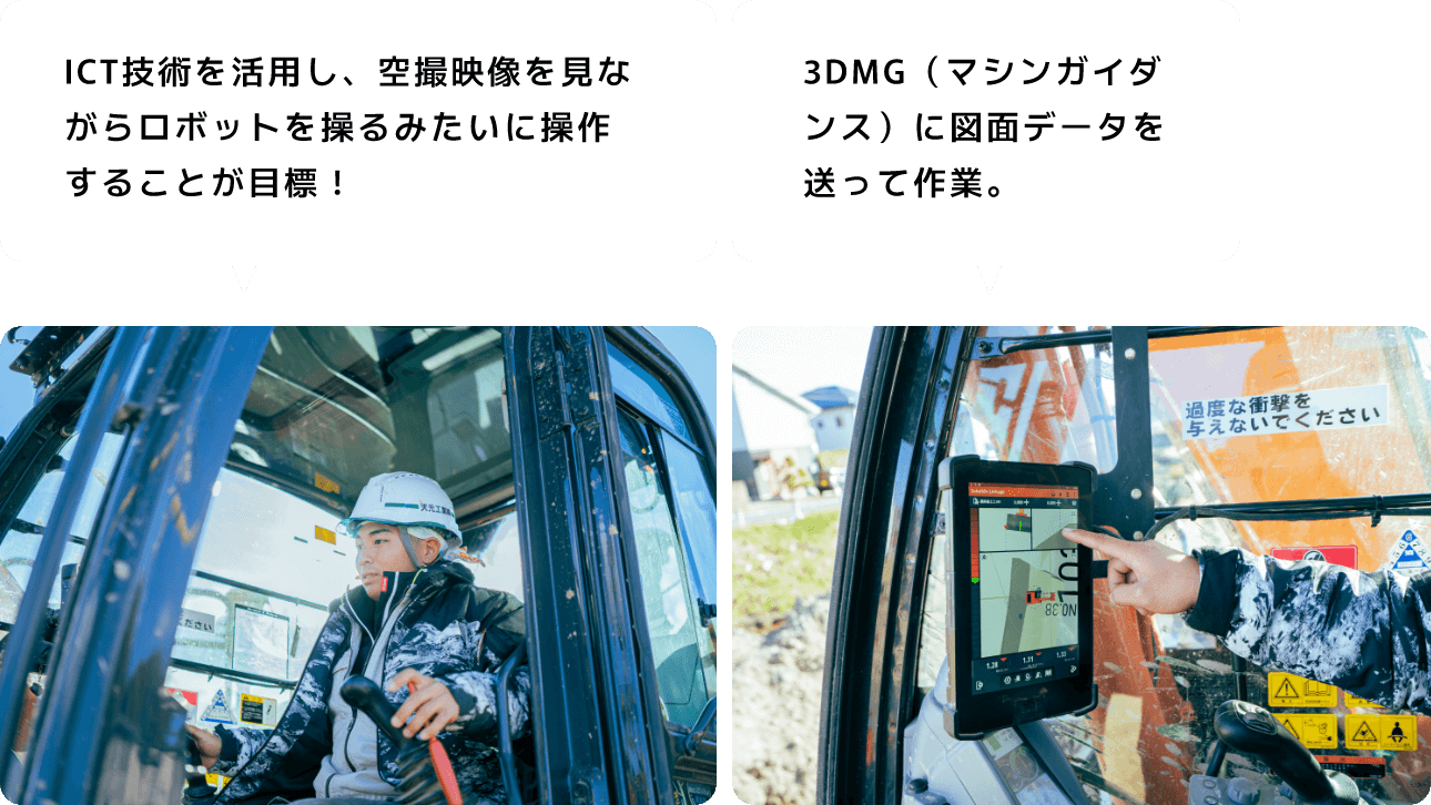 様々な作業があり、覚えることも多種にわたる。工具を使用したり重機を操作したり色々な経験が自分を育てていくことに繋がる!