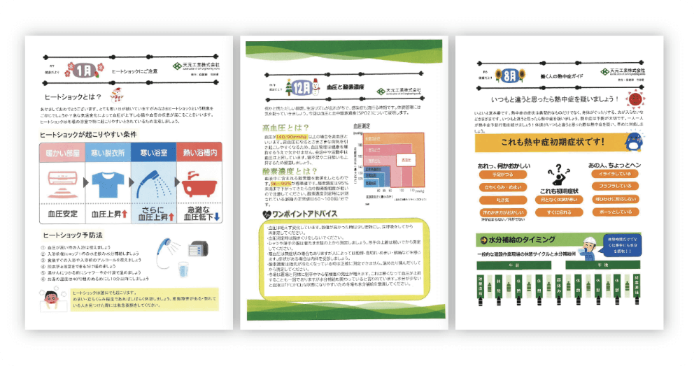 従業員の家族にも読んでもらいたい、毎月発行の健康だより。